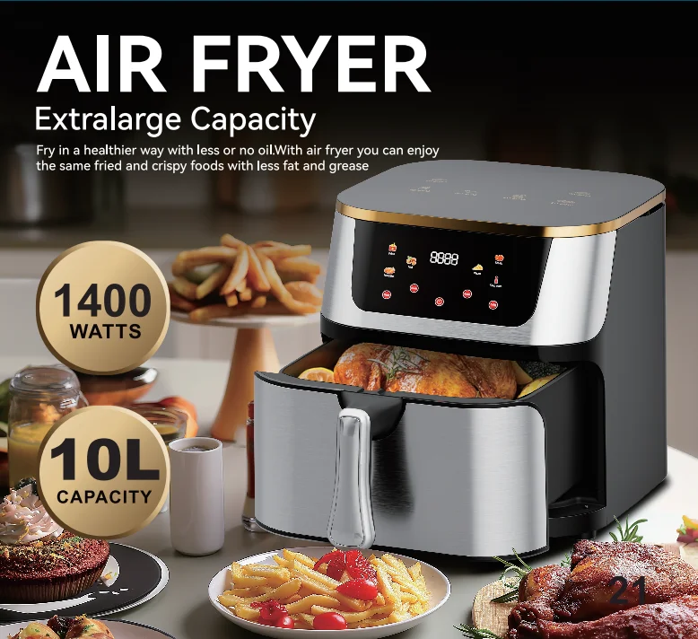Factory Direct 10L Square Visible Stainless Steel Electric Oven Large Capacity Healthy Air Fryer for Household Use OEM Options